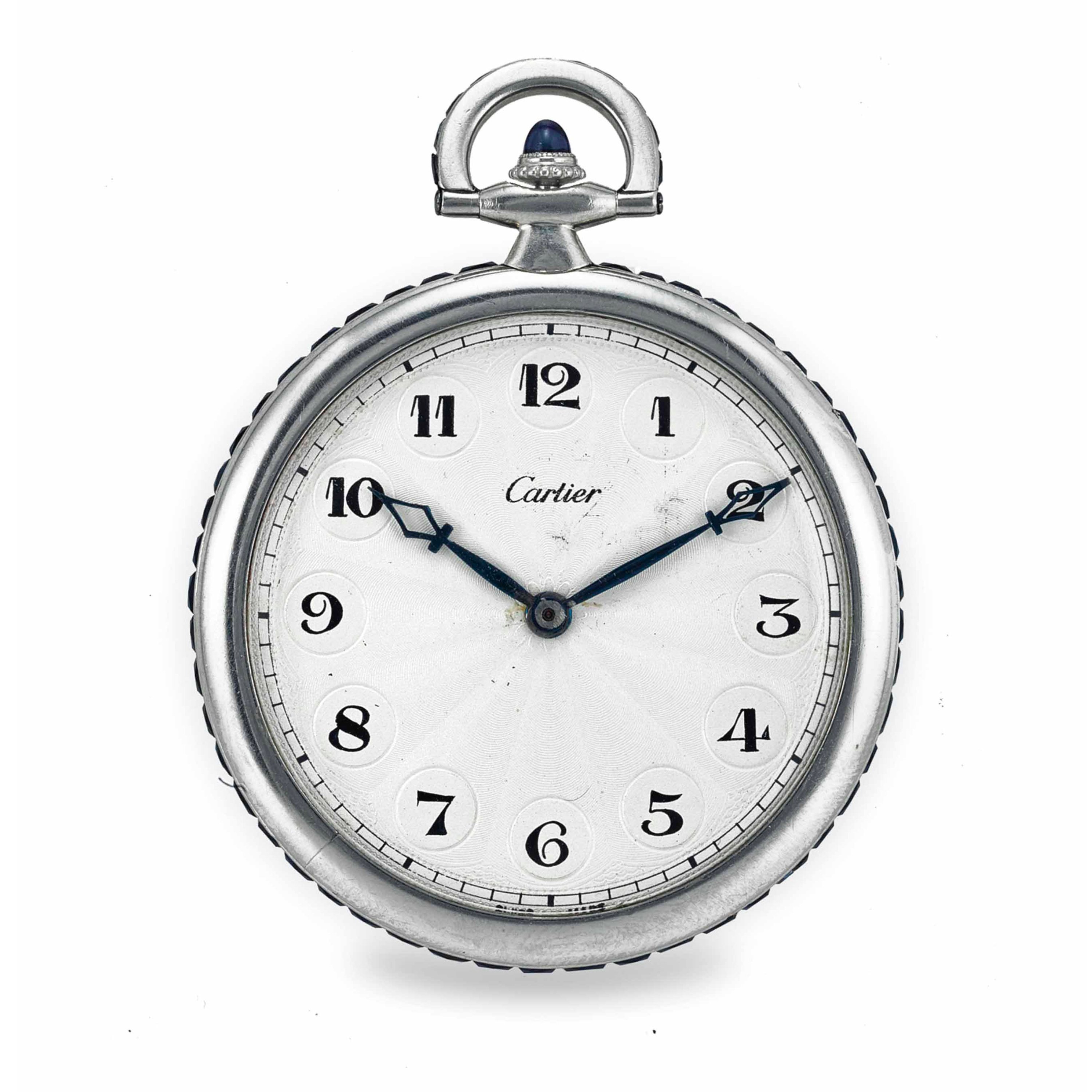 Cartier platinum and sapphire open face dress watch, circa 1925.